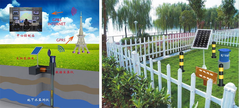 采用投入式、免試劑多參數水質分析儀,儀器通過地下水監測井懸吊于待監測水層中,對地下水體實施現場原位連續自動監測。采用太陽能供電方式,通過無線通訊技術實現地下水監測系統與中心監控平臺之間的數據傳輸和遠程控制。